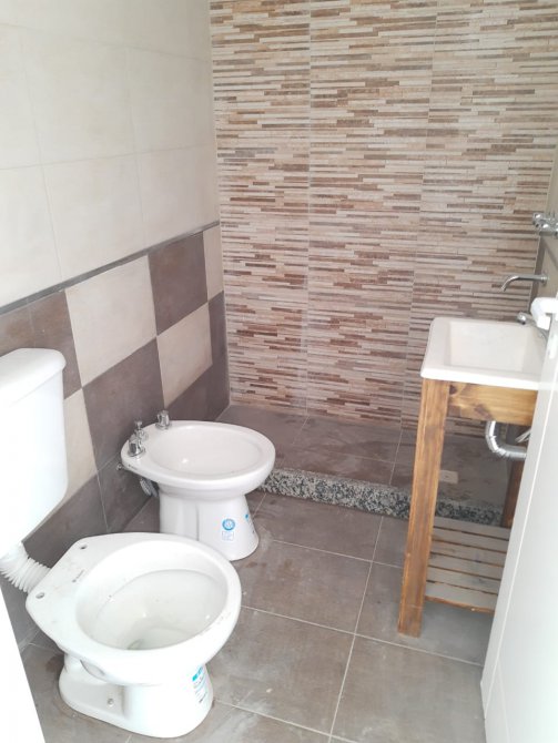 ABERTURAS DE ALUMINIO, PISOS DE PORCELANATO, MUEBLES DE COCINA BAJO MESADA Y ALACENA Y MESADA, INSTALACION DE AGUA POR TERMOFUSION, REVESTIMIENTO DE BAÑO EN CERAMICA EN 3 TONOS, GUARDAS EN BAÑO DE ACERO INOXIDABLE, MUEBLE VANITORY COMPLETO, CONEXIONES PARA TERMO ELECTICO Y PARA AIRE ACONDICIONADO, GIFERIAS FV, CONEXION PARA LAVARROPAS, INODOROS Y BIDET FERRUM.
