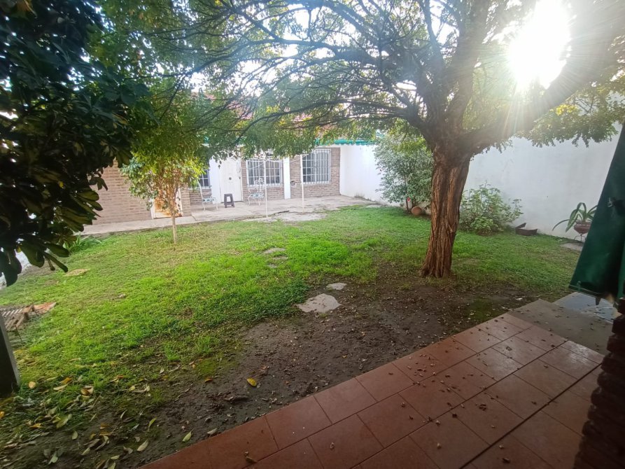 La pripiedad posee: Un jardin al frente, comedor con ventana al frente, cocina con bajo mesada y alacena con ventana vista hacia el jardin, 1° dormitorio con placard con ventana al frente, baño completo, 2° dormitorio con ventana vista hacia el patio. También posee un patio con lavadero, jardin amplio y una entrada para 3 vehiculos.