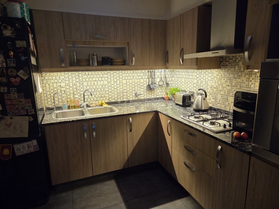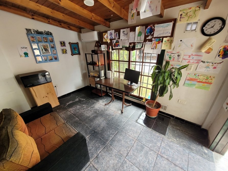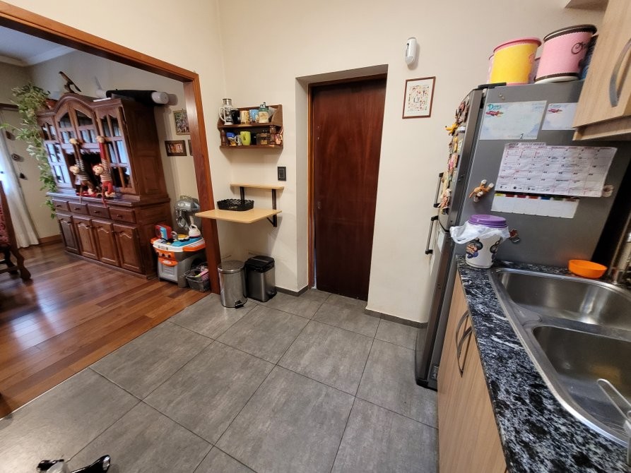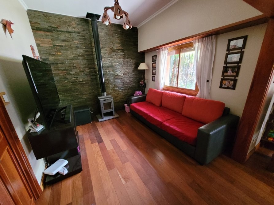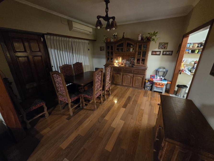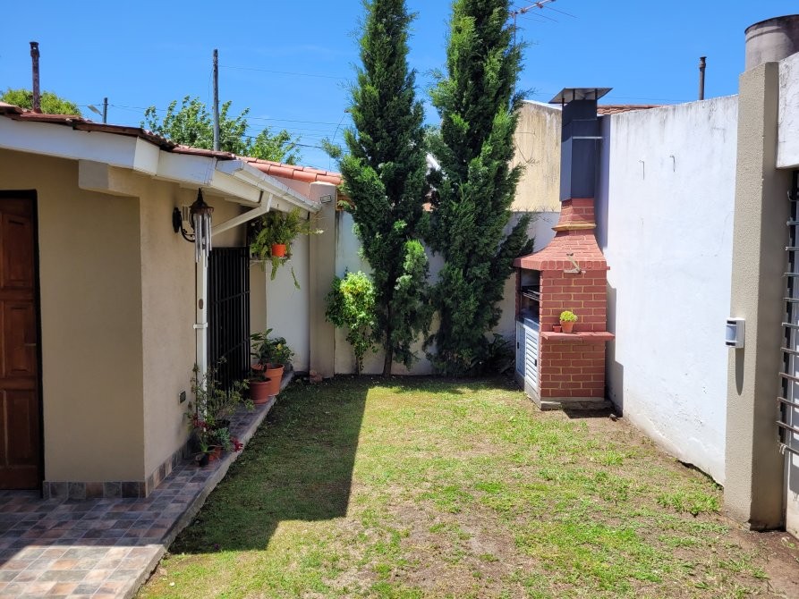 La casa posee una entrada principal por el living-comedor con doble ventana al frente, pisos de madera en excelente estado, la cocina incorporada con bajo mesada y alacena (muebles nuevos) y luces led. Un primer dormitorio amplio con Placard, ventana hacia el patio con baño en suite, segundo dormitorio con ventana hacia el patio y un distribuidor con Placard, baño principal con mampara en muy buenas condiciones, garage amplio para 2 vehículos con portón de madera, escalera caracol que es a una posible tercer habitación, detrás del garage hay un espacio que se puede utilizar como oficina o a modificación como habitación, patio con parrilla, pequeño jardín lavadero. La propiedad posee rejas al frente y techos de teja.