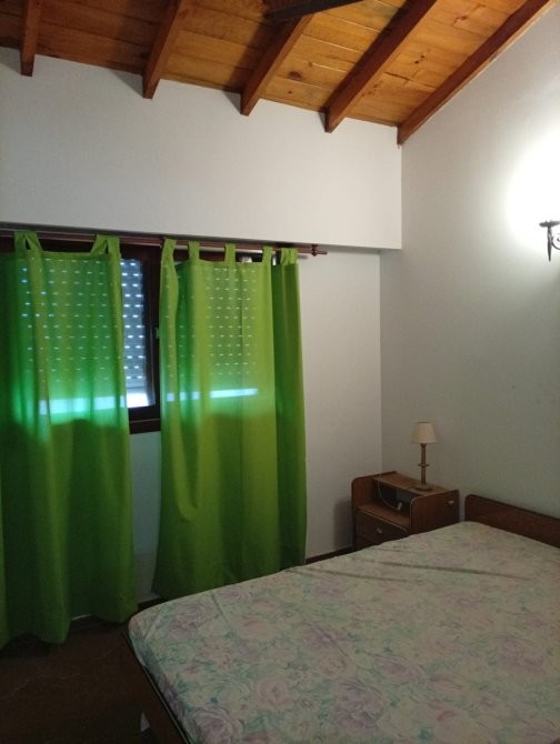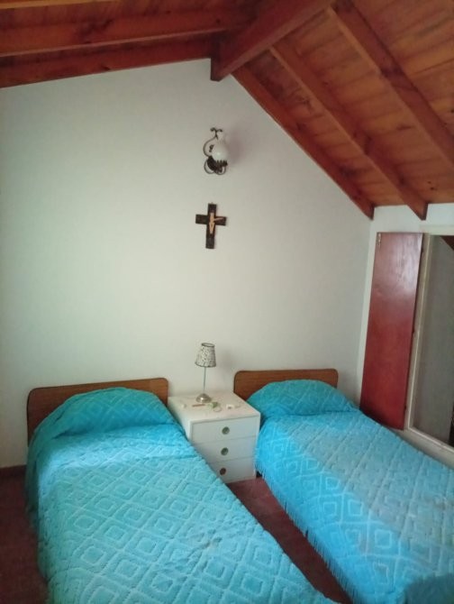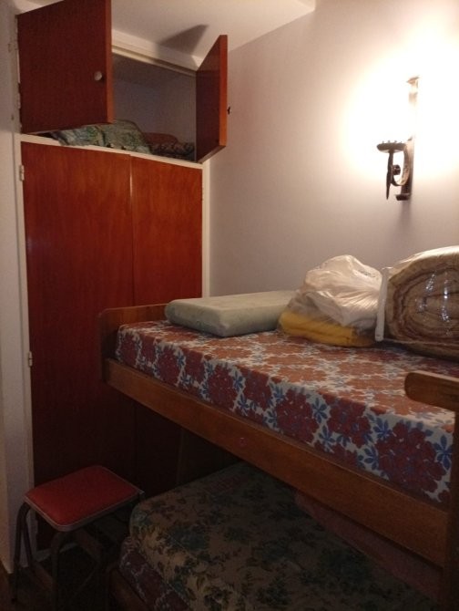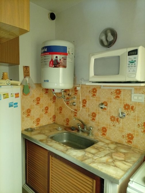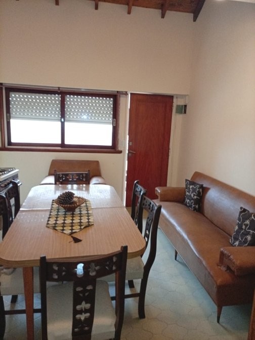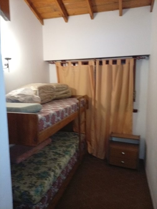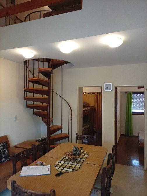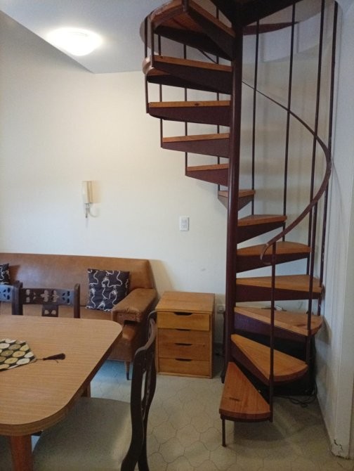 Departamento de 50 m² de superficie total y cubierta, distribuido en tres dormitorios y un baño. El acceso principal se realiza a través de un hall cubierto, que conecta con el área de estar y comedor, donde destaca una escalera caracol de madera que aporta funcionalidad al espacio. El comedor está equipado con mesa y sillas, y se integra con un sector de estar que cuenta con sillón y ventanales al exterior. La cocina independiente dispone de muebles bajo mesada, alacenas superiores, cocina a gas, microondas y ventana que permite ventilación natural. Los dormitorios presentan diferentes configuraciones, incluyendo camas individuales y literas, todos con placares empotrados y ventanas con cortinas. El baño está equipado con sanitarios completos y revestimiento cerámico en paredes. El departamento cuenta con una cochera cubierta señalizada, ubicada en el subsuelo del edificio.