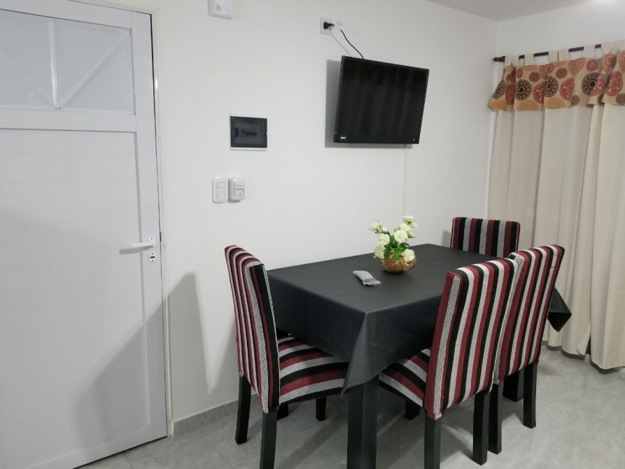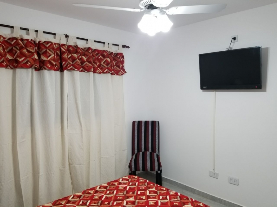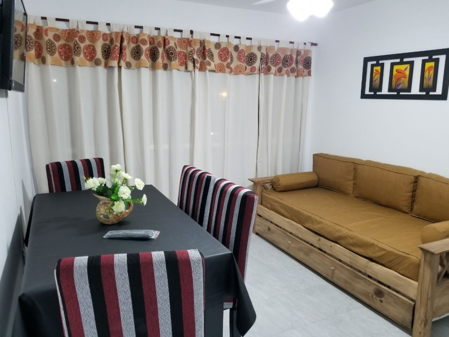 EXCELENTE DEPARTAMENTO A EXTRENAR, CENTRO, COCINA SEPARADA, HELADERA CON FRIZZER, SECA ROPA, MICROHONDAS, DOS TV LED, DOS VENTILADORES DE TECHO, LIVING COMEDOR, DORMITORIO, BAÑO CON DUCHERA, BALCON CON CERRAMIENTO, PARRILLA, CON ESPACIO. GUARDA COCHE, PRIMER PISO POR ESCALERAS, ESTADO IMPECABLE, SOLO PARA FAMILIA,