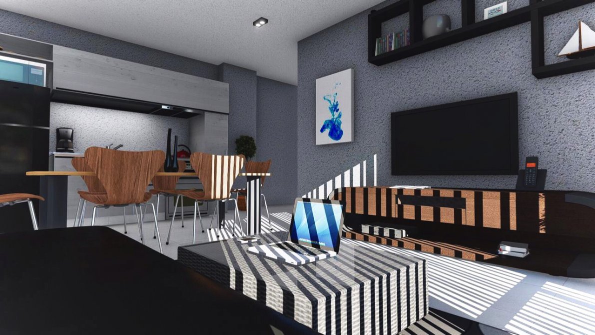 AMPLIO AMBIENTE CON COCINA INCORPORADA, BAÑO, BALCON, TERRAZA.