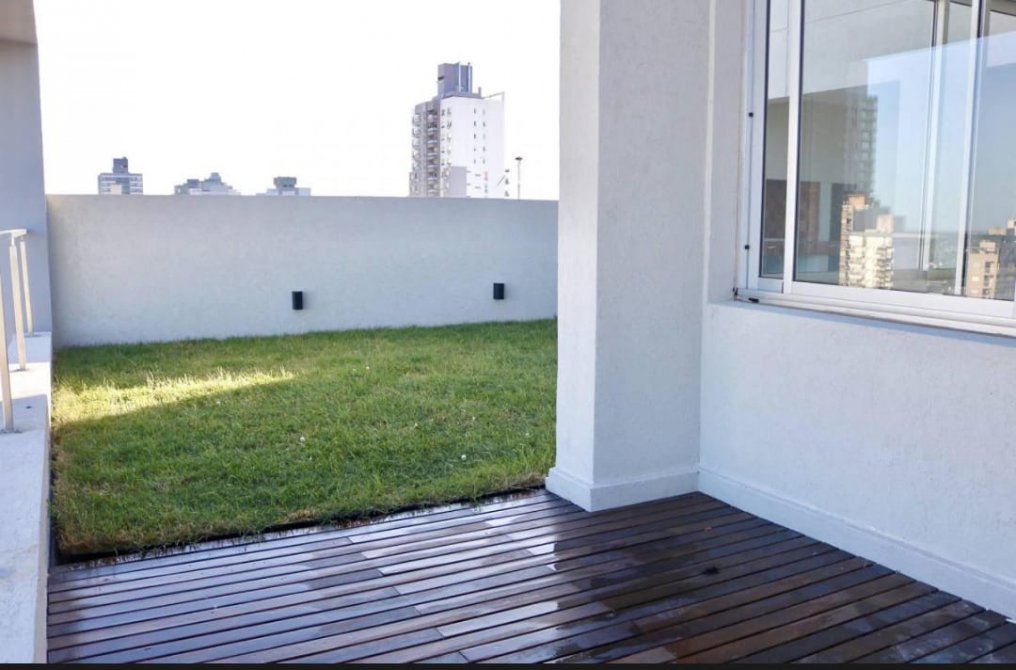 Departamento de 3 Ambientes con patio en azotea, departamento con patio y parrilla. El departamento consta de 76 m2 cubiertos y un patio de 36 m2 con pasto, deck y parrilla. La unidad posee losa radiante con medidores individuales en cada departamento, pisos de porcellanato importado simil madera en el living-comedor, pisos flotante importado de primera calidad en habitación, habitación principal con baño en suite, cocina totalmente equipada con vitro cerámico y horno empotrado. Amplios ventanales de aluminio anodizado placards completos empotrados. Equipamiento en baños de primera línea.