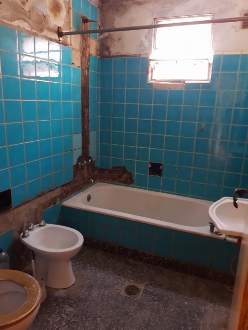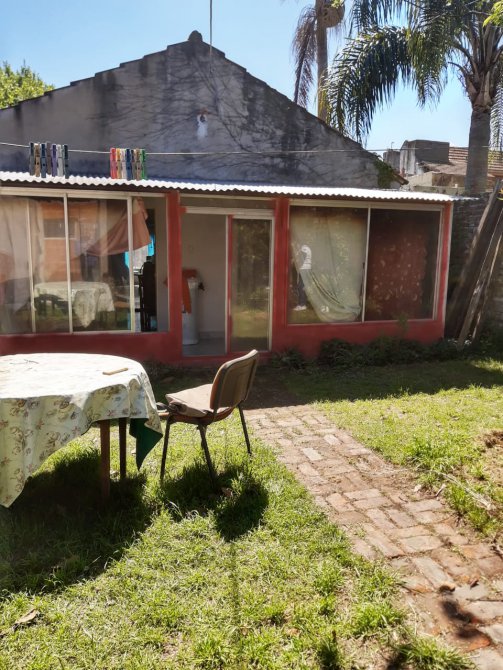 1º UNIDAD (CASA DE ADELANTE): a reciclar, posee comedor con ventana al frente, 1º dormitorio con placard con ventana al frente, baño completo, 2º dormitorio con placard y ventana al patio, cocina, patio amplio, jardìn y galpòn. Techo de loza.