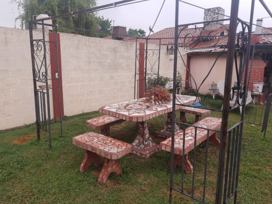 Casa de 3 ambientes que consta de: terreno de 10 x 40, jardìn al frente, garage pasante para 2 autos, comedor diario con ventanal con vista al jardìn, cocina con bajomesada y alacena, living con ventana al frente ( actualmente utilizado como 3º dormitorio), 1º dormitorio principal con ventana al frente con placard, 2º dormitorio con placard, baño principal con bañera, 2º baño con ducha, patio con galeria, 2º patio, jardìn amplio, pileta de nataciòn, galpòn al fondo