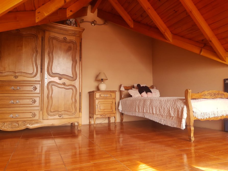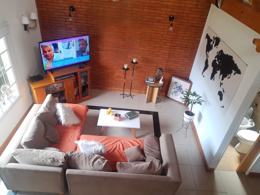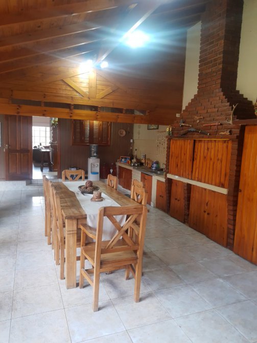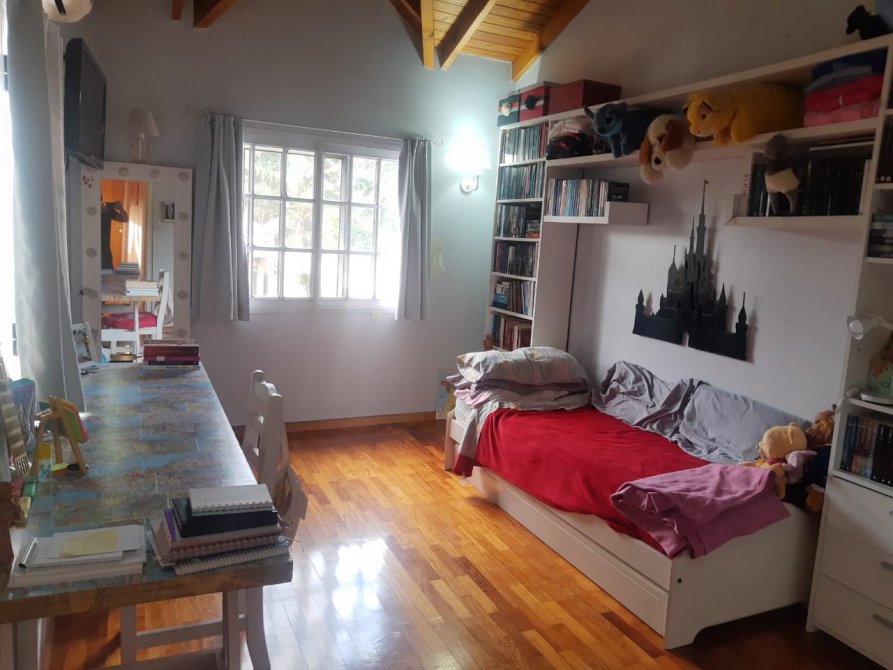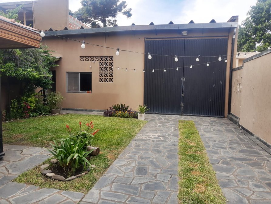 LIVING-COMEDOR CON VENTANA AL FRENTE, COCINA CON BAJO MESADA, ALACENA Y DESAYUNADOR, HALL DE ENTRADA CON PISO DE MADERA, DORMITORIO CON VENTANA AL FRENTE CON VESTIDOR Y BAÑO EN SUITE, CON HIDRO MASAJE, BAÑO PRINCIPAL, DORMITORIO CON VENTANA AL JARDIN, ESCALERA CARACOL CON OTRO DORMITORIO CHICO. QUINCHO AMPLIO CON PARRILLA CON VENTANA CON VISTA AL JARDIN, ENTRADA PARA 3 AUTOS TECHADA Y 2 ENTRADAS DE AUTOS SIN TECHAR, EN EL FONDO COCINA-COMEDOR CON DORMITORIO Y BAÑO, GARAGE GRANDE PARA CAMIONES.