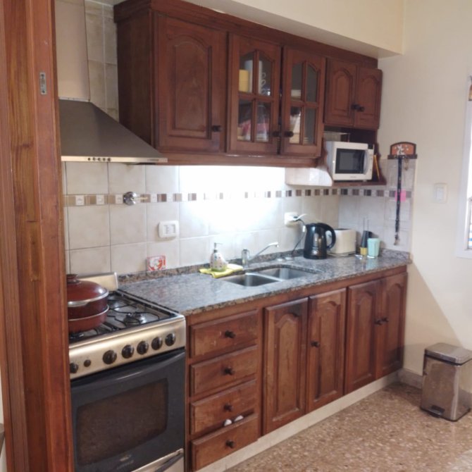 COMPUESTO DE DOS DOMITORIOS AMPLIOS CON PISOS DE PARQUET, AMPLIO LIVING COMEDOR AL FRENTE, COCINA COMEDOR DIARO AMPLIO CON MUEBLES DE BAJO Y SOBRE MESADA, GALERIA CUBIERTA CON CERRAMIENTOS EN ALUMINIO CON LAVADERO INCORPORADO, BAÑO INSTALADO COMPLETO CON PISOS Y PAREDES REVESTIDAS EN CERAMICA, PATIO Y PARRILLA. EXCELENTE ESTADO.