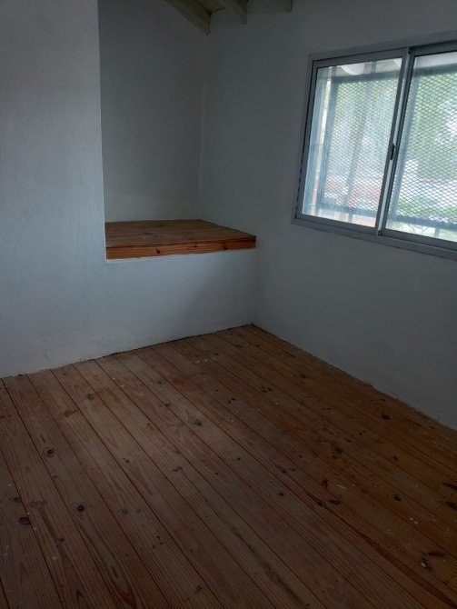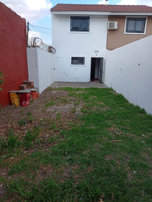 La propiedad posee rejas negras al frente y entrada para autos. En el interior posee cocina comedor amplia con bajo mesada, escalera que lleva al primer dormitorio el frente con piso de madera y segundo dormitorio al contra frente con piso de madera. Ademas, la propiedad posee patio con conexion para lavarropas y jardin amplio.